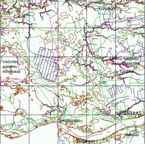 geodezijos ir kartografijos tarnyba, 1998.Lapo "Jurbarkas" adm.e00, elev.e00 ir km5.e00 sluoksniai GRASS- 57 formate. |