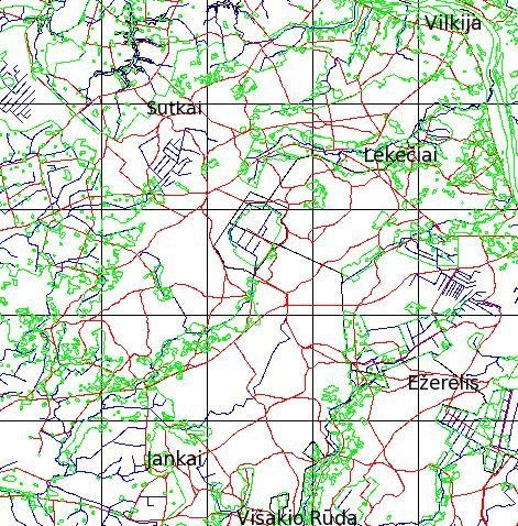 ![]() Lekėčių apylinkių keliai ir saugomų teritorijų ribos. LTDBK50000-V