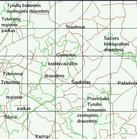 ![]() Šiluvos apylinkių keliai ir saugomų teritorijų ribos. LTDBK50000-V Valstybinė geodezijos