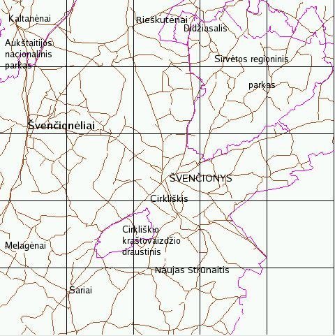![]() Švenčionėlių apylinkių keliai ir saugomų teritorijų ribos. LTDBK50000-V Valstybinė geodezijos ir kartografijos tarnyba,