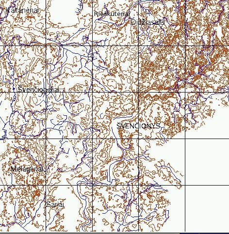 ![]() Švenčionėlių apylinkių reljefas, hidrografija ir keliai. LTDBK50000-V