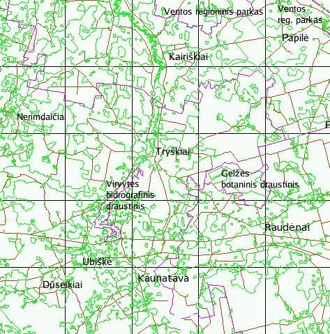 tarnyba, 1998.Ubiškės apylinkių reljefas, upės, keliai ir saugomų teritorijų ribos. Lapo "Tryškiai" elev.e00, rivers.e00, infra.e00, adm.e00 ir km5.e00 sluoksniai GRASS-61 formate. |