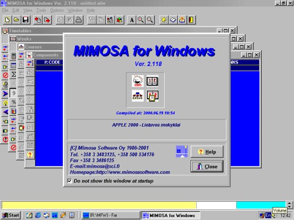 Tvarkaraštis be "Mimosa" - tvarkaraštis be ateities???Profiliuotose mokyklose viena iš sudėtingiausių problemų - pamokų tvarkaraščio sudarymas. Ši problema tuo sudėtingesnė, kuo daugiau pasirinkimo laisvės buvo duodama vienuoliktokams, tai yra kuo labiau yra tenkinami jų poreikiai. Pamokų tvarkaraščio sudarymą jau keli metai analizuoja kompiuterinių programų sudarytojai, kadangi gera tokio tipo programa turėtų didelį pasisekimą. Per kelis pastaruosius metus teko matyti keletą programų, tačiau, mano nuomone, nei viena jų nepasirodė tinkama. Buvau įsitikinusi, kad geros pamokų tvarkaraščio sudarymo programos parašyti neįmanoma, nes tai pernelyg sudėtingas uždavinys. Deja, prieš metus teko maloniai nustebti. Amerikos lietuviai Amanda ir Algirdas Mulioliai, sužinoję apie pamokų tvarkaraščio sudarymo sunkumus, pasiryžo pagelbėti Lietuvos mokykloms. Jie apžvelgė patirtį pasaulio mokyklose ir atrinko programą, turinčią plačias konfigūravimo galimybes. Programa vadinosi "Mimosa".