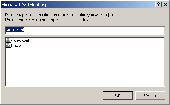 dėl autorizacijos). Aš naudojau NetMeeting v2.11 (su Win2000,