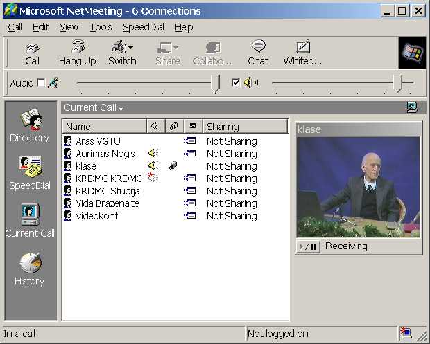Videokonferencija žiūrima su Microsoft NetMeeting programinė įranga.
