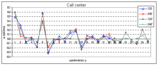 Call Center ir AT&T kompanijos duomenis a koeficientų įtaka pavaizduota žemiau esančiuose