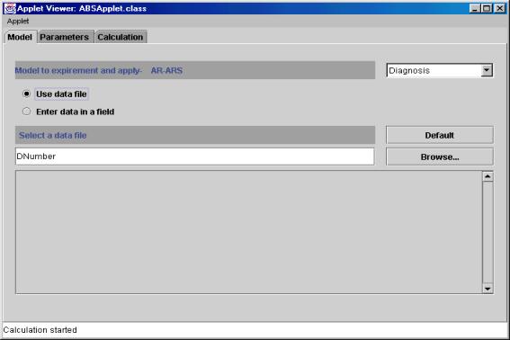 Taip pat šiame lange galima pasirinkti, kokį uždavinį spręsime prognozavimo ar klasifikavimo-diagnozavimo. Sprendžiant prognozavimo uždavinį galima naudoti call.data arba armatest failus, o klasifikavimo Dnumber arba Dnumber0.txt