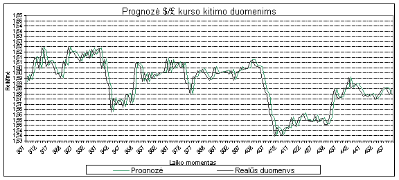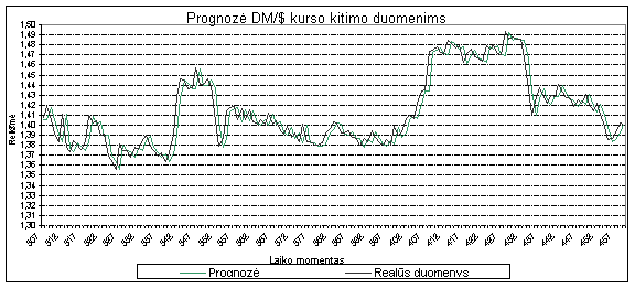 32 pav. DM/$ kurso kitimo prognozė AR-ABS modeliu