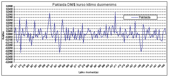 33 pav. Paklaida prognozuojant DM/$ kursų kitimą AR-ABS modeliu