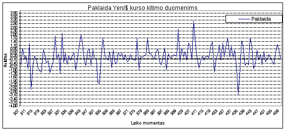 35 pav. Paklaida prognozuojant Yen/$ kursų kitimą AR-ABS modeliu