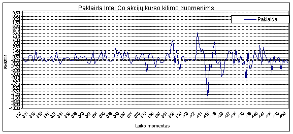 39 pav. Paklaida prognozuojant Intel Co akcijų kurso kitimą AR-ABS modeliu