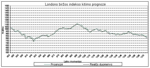 40 pav. Londono biržos indekso kitimo prognozė AR-ABS modeliu