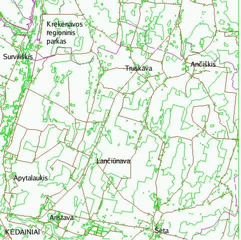 Valstybinė geodezijos ir kartografijos tarnyba, 1998.Ančiškio apylinkių keliai, žemėnaudos ir saugomų teritorijų ribos. Lapo "Šėta" infra.e00, adm.e00 ir landu.e00 sluoksniai GRASS-61 formate. |