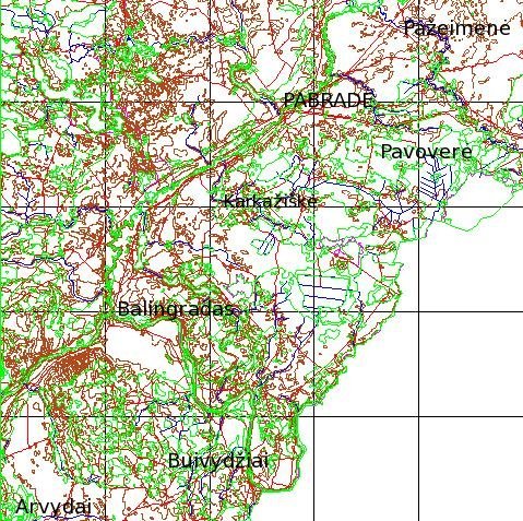 ![]() Pabradės apylinkių reljefas, hidrografija, žemėnaudos ir keliai. LTDBK50000-V