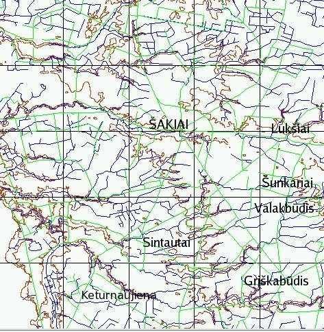 ![]() Šakių apylinkių reljefas, hidrografija, keliai ir žemėnaudos. LTDBK50000-V