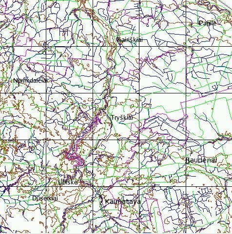 tarnyba, 1998.Ubiškės apylinkių keliai, žemėnaudos, saugomų teritorijų ribos. Lapo "Tryškiai" infra.e00, landu.e00, adm.e00 ir km5.e00 sluoksniai GRASS-61 formate. |