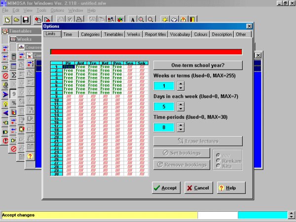 Tvarkaraštis be "Mimosa" - tvarkaraštis be ateities???Profiliuotose mokyklose viena iš sudėtingiausių problemų - pamokų tvarkaraščio sudarymas. Ši problema tuo sudėtingesnė, kuo daugiau pasirinkimo laisvės buvo duodama vienuoliktokams, tai yra kuo labiau yra tenkinami jų poreikiai. Pamokų tvarkaraščio sudarymą jau keli metai analizuoja kompiuterinių programų sudarytojai, kadangi gera tokio tipo programa turėtų didelį pasisekimą. Per kelis pastaruosius metus teko matyti keletą programų, tačiau, mano nuomone, nei viena jų nepasirodė tinkama. Buvau įsitikinusi, kad geros pamokų tvarkaraščio sudarymo programos parašyti neįmanoma, nes tai pernelyg sudėtingas uždavinys. Deja, prieš metus teko maloniai nustebti. Amerikos lietuviai Amanda ir Algirdas Mulioliai, sužinoję apie pamokų tvarkaraščio sudarymo sunkumus, pasiryžo pagelbėti Lietuvos mokykloms. Jie apžvelgė patirtį pasaulio mokyklose ir atrinko programą, turinčią plačias konfigūravimo galimybes. Programa vadinosi "Mimosa".