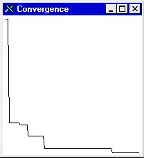 Cia pateikti programos darbo rezultatai (Konvergencijos kreive ir projekcija). Rezultatai yra gauti du kartus Ivykdzius programa